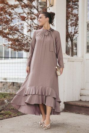 - Sweet high-low hems: High-low hems are stylish and elegant while still being modest. Go for a classy look with an A-line silhouette and long sleeves in a soft spring color, like lavender. Embroidery, texture, or dainty flowers add an extra touch of femininity.