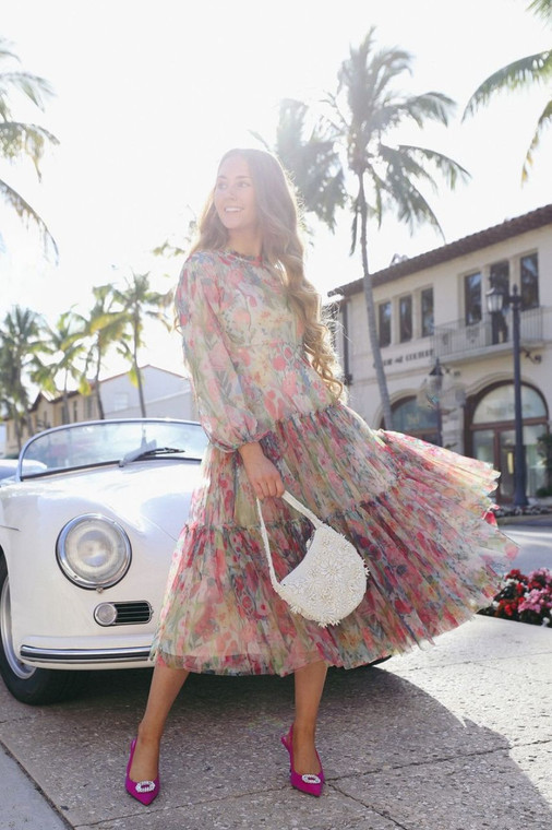 Give us ALL the summer colors! This dress is for the ladies who aren't afraid of color. A beautiful garden floral print in bright, beautiful colors for summer. A tiered tulle skirt that was made for twirling - trust us, we tested it! A lovely choice for Mother's Day, weddings, family photos and so much more.