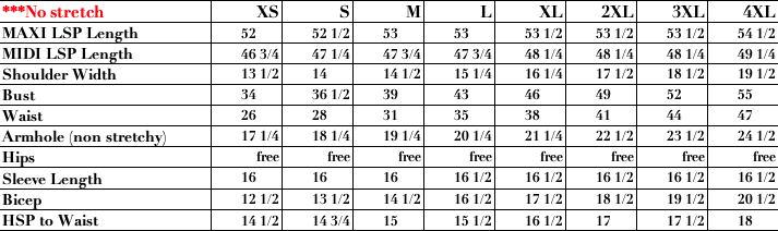 If your measurements are between those listed in the size chart, pick the next larger size. Meet our Models for help finding the perfect fit.
