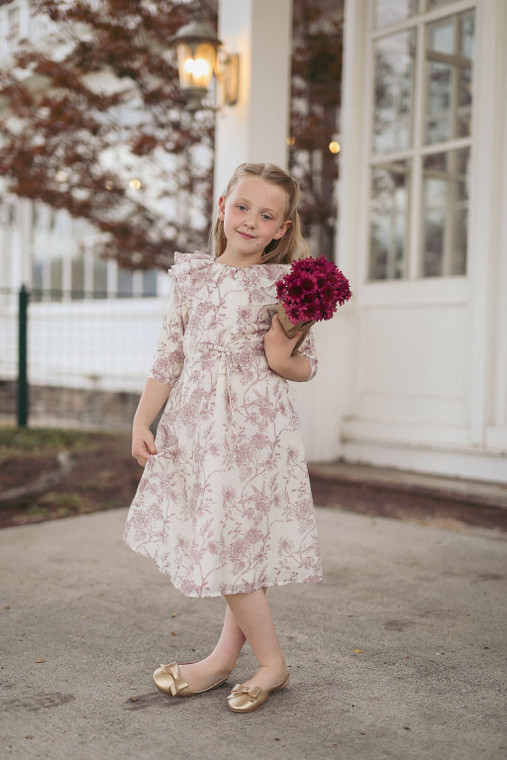 A dress that can be worn for several seasons and occasions is a true gem and this dress fits the bill! A new silhouette we know your little lady will love. Full of sweet, whimsy details like the ruffle shoulders and purple floral and bird print. A lovely choice for elegant outings, family photos, Sunday best and more!