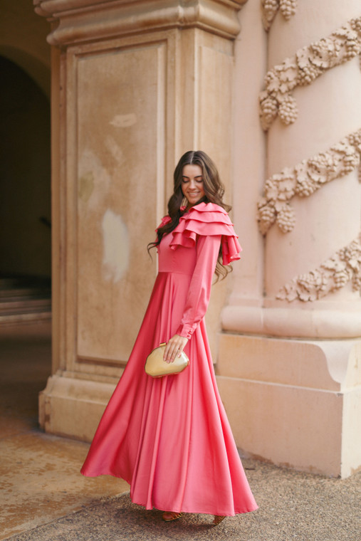 Rightfully named the Madame Monet dress, this dress is like a Monet painting come to life! Delicate, feminine details and a beautiful that looks lovely on all complexions. Sophisticated satin-like fabric that was made for special occasions. A flattering, feminine A-line skirt that flows beautifully and creates for a stunning twirl (test it out for yourself!). And last but certainly not least - the stunning ruffle sleeves complete this unique look and make it stand out in a crowd. A beautiful choice for weddings, special photos, banquets - anytime you want to take a step back in time! Back zipper.